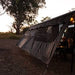 The Tiegear Shield is a waterproof awning privacy screen designed to provide instant protection and privacy from the elements, such as sun, wind, and rain. It features built-in mesh zip-up windows for ventilation and view control, a durable, weather-rated material, and compatibility with both 6mm and 8mm sail tracks. The Shield includes integrated utility rails and a magazine rack for campsite organization and comes with a PAX storage bag for easy packing.